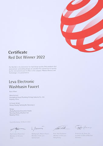 2022德國紅點設計大獎-華藝衛浴Leva智能面盆龍頭(型號82035)