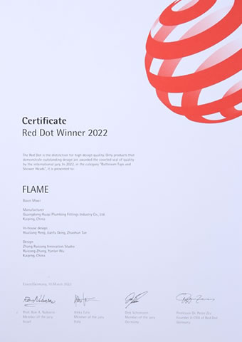 2022德國紅點設計大獎-華藝衛浴Flame系列龍頭(型號168301)