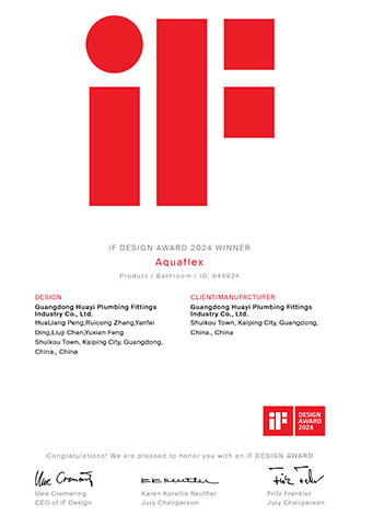 2024年度iF國際工業設計大獎證書(Aquaflex花灑升降桿)