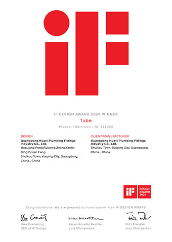 2024年度iF國際工業設計大獎證書(Tube面盆龍頭)